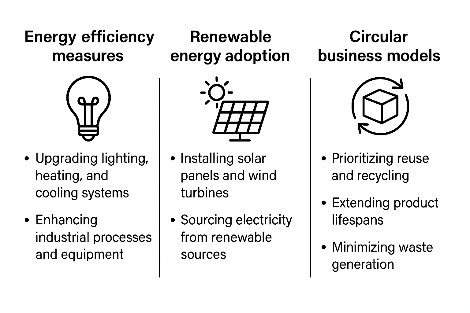 Figure 1. Three core sustainability strategies, each illustrated with practical examples to guide low-carbon action.